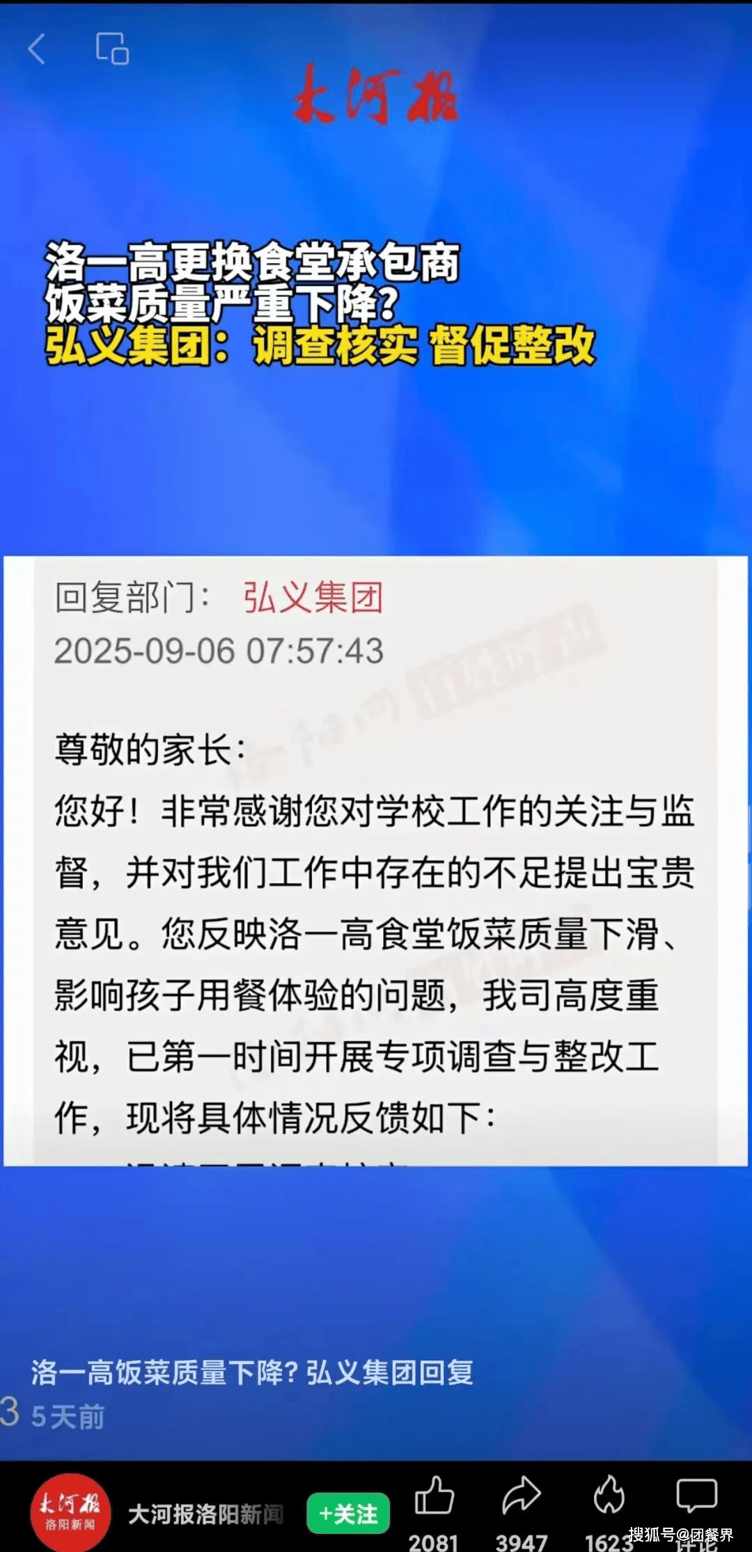 同样,洛阳多所高中食堂由弘义集团垄断运营后,问题集中爆发:米饭夹生、预制菜泛滥、10元餐仅一勺菜,导致家长通过12345热线投诉量激增。